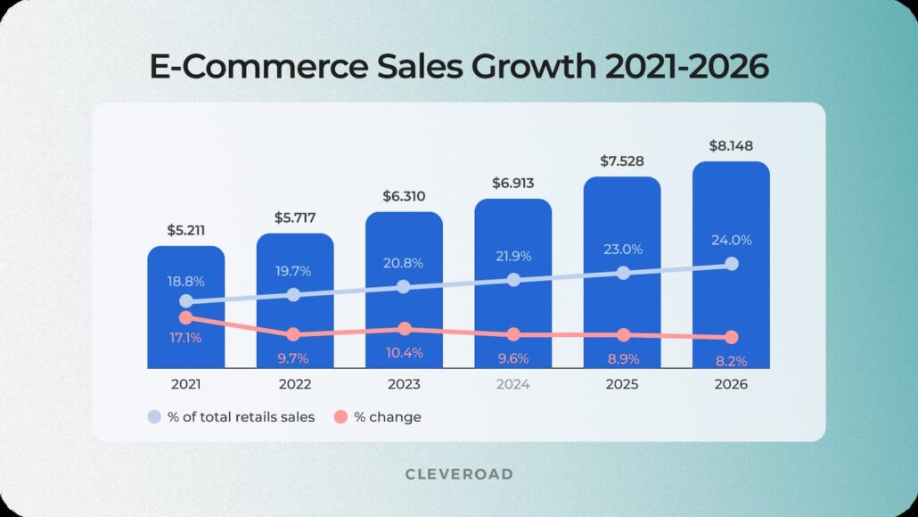 Note: We at Cleveroad build high-performance, secure, and scalable e-commerce websites tailored to your business goals. Our team delivers full-cycle development including UX/UI design, architecture planning, integrations and optimization. We implement fast product search, flexible catalog management, multi-currency payments, automated inventory syncing, and secure checkout flows. Additionally, we integrate CRM/ERP systems, set up SEO-friendly structures, and apply analytics and personalization tools to boost conversions, customer retention, and operational efficiency.